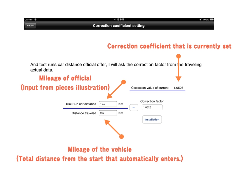"Trial Run car distance" to "actual mileage" and performs the computation in "=" button to enter the value.