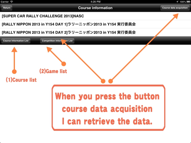 When you press the "Course Data acquisition" button, you will get a list of data organizers were prepared.