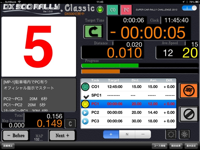 上図は、CO区間中のPC競技の例です。上部インジケータは、