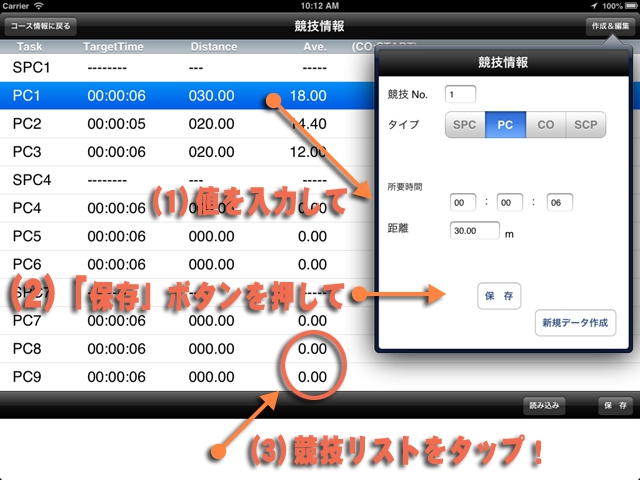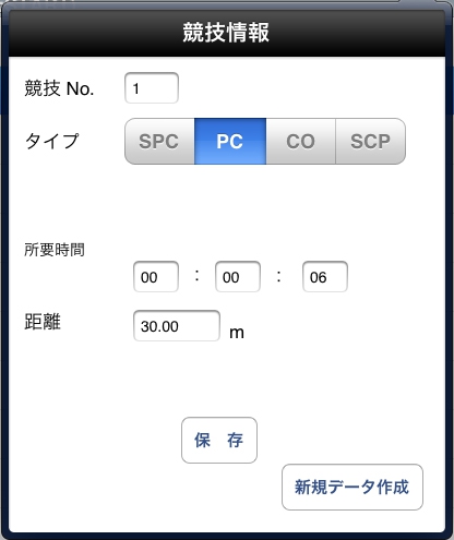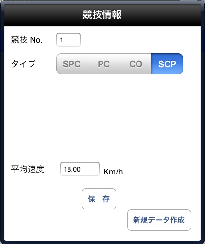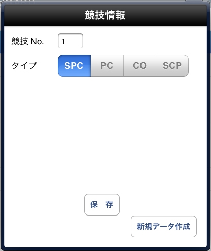 競技情報(SPC,PC,CO,SCP)を確認、編集、作成する画面です。