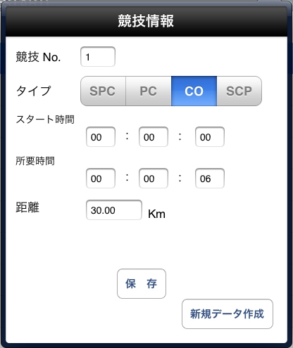 競技リストをタップして選択後、「作成&編集」のボタンを押すと、競技の「編集モード」サブウィンドウが開きます。