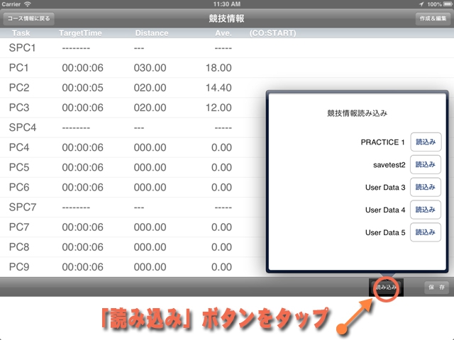主催者が用意したデータを読み込んで、ゼッケン順にスタート時間を変更する必要がある場合や、ご自分で競技データを作成して練習する場合などに使用します。