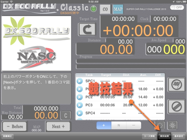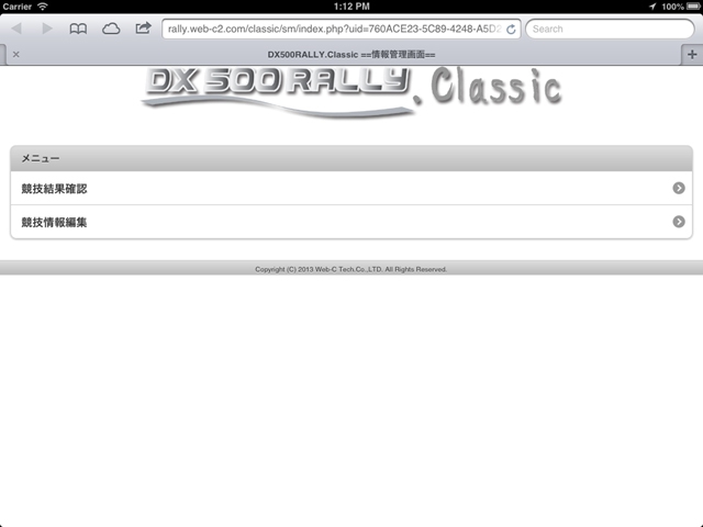 「DX500RALLY.Classic」は、一度閉じられて、「ブラウザアプリ」が起動しますので、競技中は使用しないことをお勧めいたします。