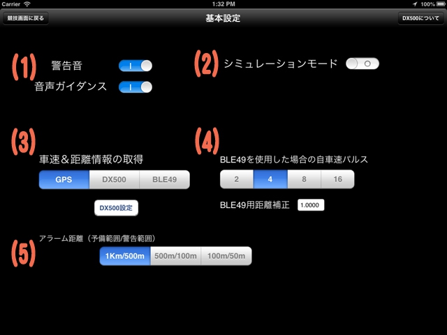 - 車速と走行距離情報の取得を、「GPS」「DX500」「BLE49」の3つから選択