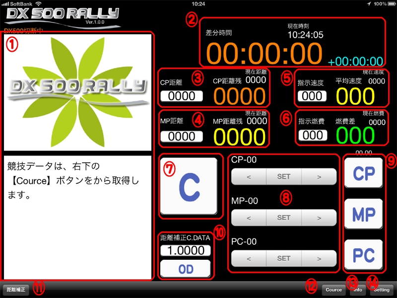「CP距離入力エリア」は、コースデータがある場合のみ「⑧CPセレクター」「⑨CPボタン」と連動しています。